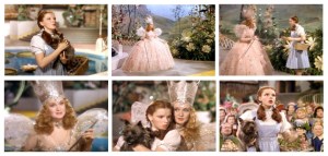 A matte shot is one in which two images are merged into one. This is a common process done to manipulate the scenery due to cost or impossibility. These images from The Wizard of Oz, demonstrate the process of creating a matte shot. The first is a frame from a live action shot of the group walking on the yellow brick road. The second is a painting of Emerald City and the surrounding scenery including the end of the yellow brick road. The third image combines these two components to create a matte shot, which gives the illusion that the actors are actually walking towards Emerald City, when in fact it does not even exist. It was clearly impossible in this case to build the scenery for this shot.