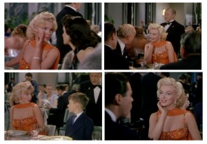 Gentlemen Prefer Blondes (1953) also utilized the three-point scheme. There is enough contrast in the backlight and highlight that the people in the crowded scenes are distinguishable from one another.